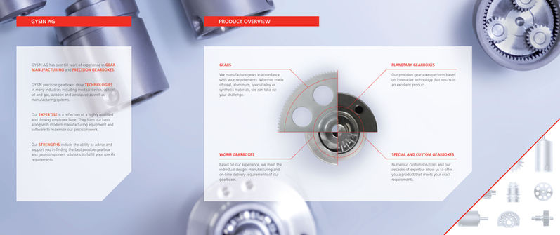 Im Jahr 2012 führten wir eine umfassende Neugestaltung des gesamten Markenauftritts der Gysin AG durch. Dieses spezialisierte Unternehmen ist auf die Herstellung von Zahnrädern und Getrieben für verschiedenste Einsatzbereiche spezialisiert.